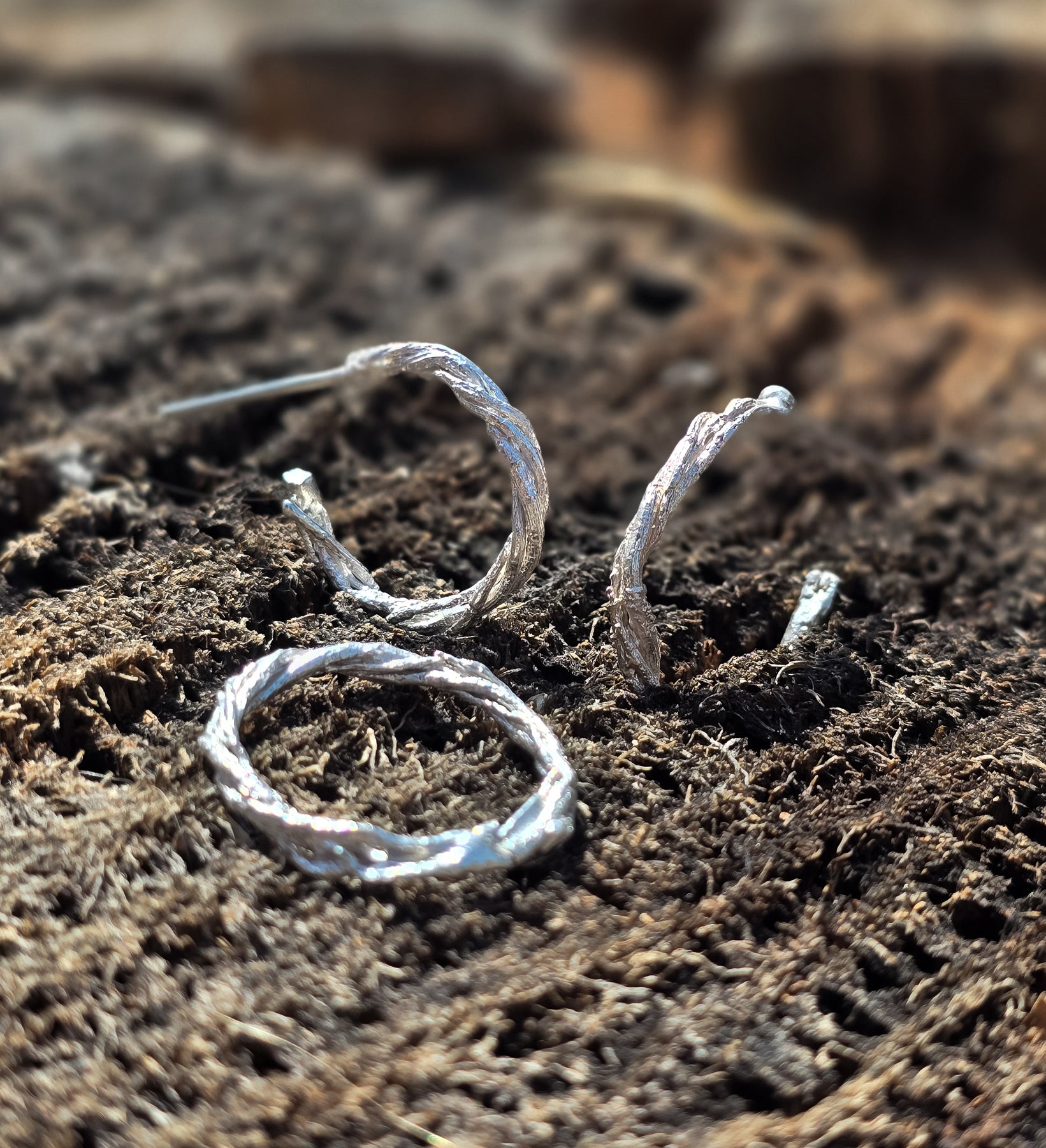 These Hoop Earrings are made from a single naturally cat twisted Branch, it forms an elegant natural hoop with details that only nature can provide.